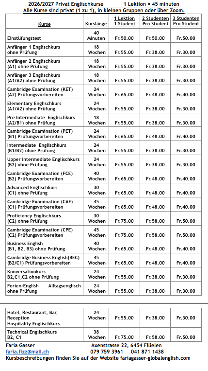 *Faria Gasser’s Course Advertisement